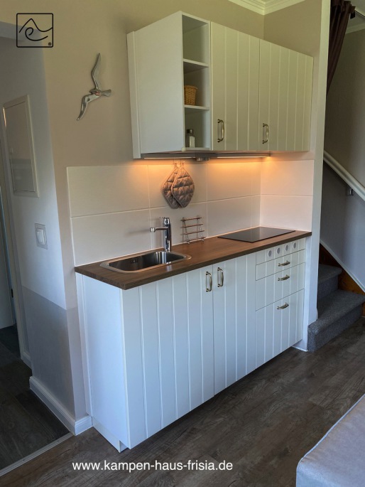 Mini-Küchenzeile mit Duo-Cerankochfeld, Kaffee- und Nespressomaschine (ohne Milchauschäumer), Goldfilter für Kaffeemaschine, Toaster, Heisswasserkocher,